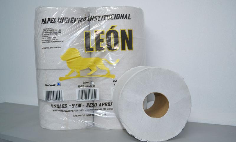 PAPEL HIGIÊNICO EXTRA LUXO LEÓN- 100% CELULOSE – 9 cm – 2,4 kg – 8 ROLOS FARDO